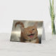 En mycket glad rödhårig katt som blinkar. Kortet inuti lyder: Grattis på födelsedagen.