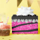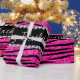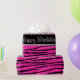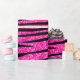 Modern nyare shock rosa zebra ränder mönster (djurtryck) (inte äkta glitter) med svarta diamanter (inte riktiga diamanter) med hjärtan och prickar. Glitter zebra-presentidéer för flickor, tonåringar och kvinnor. Födelsedag papper med ord grattis på födelsedagen!