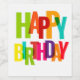 En livfull märkre på födelsedagen med ord "Grattis på födelsedagen" i fetstilt, färglöst brev. Varje brev visar en annan ljus nyans som skapar en festlig och glad atmosfär. Märkrn är designad med en ren vit bakgrund.
