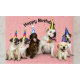 En grupp animerad hundar som bar party hattar och firar en födelsedag. Hundar är glatt och lycklig och lekfullt att ha en party i lycklig.