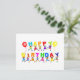 En grupp av lycklig och olika barn som håller i brev och som tydligt visar GRATTIS PÅ FÖDELSEDAGEN i ord.