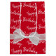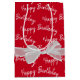 Grattis på födelsedagen-text och vitt skabb på röd bakgrund. Bakgrund färg kan redigeras. Texten kan redigeras eller tas bort.