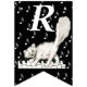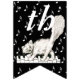 Den här flagga-formade buntbanderollen Grattis på födelsedagen är svart med vit musik noter och en vit katt från lycklig med fluffy svan som går över piano nycklar. Anpassa födelseår med mallarna.