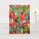 Gelébönor av olika färger som all är blandade upp med ord "grattis på födelsedagengeléböna".