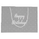 Gåvan hänger lös med pastellfärgade rosor, och blått pricker mönster på grå färgbakgrund.
