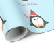 Grattis på födelsedagenpingvin som slår in papper presentpapper