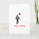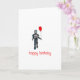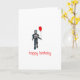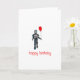 Grattis på födelsedagenhälsningkort. Gullig teckning av en robot med en röd ballong