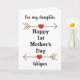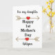 Ett första mors dag dotter-kort som du enkelt kan anpassa med hennes namn. Funktioner glitter pilar med hjärtan. Inuti detta glada första mors dag kort för dotter finns ett hjärtligt meddelande som du också kan ändra enkelt. Baksidan av detta moderna första mors dag kort har samma pil och hjärtan där du kan anpassa året.