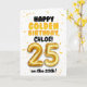 Fira att fylla 25 på den 25:e med det här lyckliga födelsedagskortet! Designat i ett ljust och glatt gult tema har kortet en rolig och djärv layout med konfettidetaljer och en stor gul ballong i form av siffran. Personalisera det med ett namn på framsidan och på insidan av kortet för att göra deras gyllene födelsedag extra speciell!
