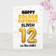 Fira att ditt barn fyller 12 den 12:e med det här lyckliga kortet för gyllene födelsedagar! Designat i ett ljust och glatt gyllene tema har kortet en rolig och djärv layout med konfettidetaljer och en stor gyllene ballong med siffran. Personalisera det med ett namn på framsidan och på insidan av kortet för att göra deras gyllene födelsedag extra speciell!