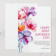 Lycklig första mors dag Elegant blomsterbukett Holiday Card har en fantastisk vattenfärgblomsterarrangemang i nyanser av rosa, lila och orange som ger en livfull men elegant touch. Framsidan innehåller meddelandet "LYCKLIG FÖRSTA MORS DAG!" i en sofistikerad typsnitt, tillsammans med ett sött och uppmuntrande meddelande om moderskapets resa.