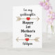 Ett lyckligt mors dag kort till guddotter 1 år, som du enkelt kan anpassa med hennes namn. Finns i glitter med pilar och hjärtan. Inuti detta kort till guddotter på mors dag står ett hjärtligt meddelande, som du också kan ändra. Baksidan av detta moderna kort till mors dag har samma design där du kan anpassa året.