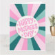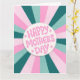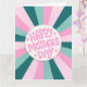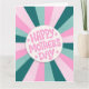 Behandla din mamma på mors dag med detta retro-solstänkta "Grattis på mors dag"-kort. Det perfekta sättet att visa precis hur mycket du bryr dig! Vårt kort är designat med ett livfullt grönt och rosa retro-solstänkt mönster på utsidan och saftiga bokstäver på insidan.