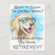 En söt och modern gratulationskort för pensionärer med en rolig golden retriever på en tropisk strand. Originaldesign skapad från en av våra handmålade akvareller.