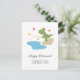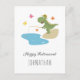 Den här söta och humoristiska lyckliga pensionskortet har en tecknad illustration av en rolig dinosaurie. Dino står bredvid vattnet och håller i ett fiskespö och väntar på den stora fångsten. Illustrationen är gjord i varma sommarfärger: grönt, gult och mjukt blått. Ett fantastiskt kort att skicka till pappa, farfar eller bror på deras pensionering, speciellt om han är ett fiskefan. Du kan enkelt anpassa texten (hälsning och namn) med hjälp av Zazzles webbtjänster.