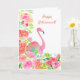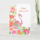 Grattis på pensionen Vattenfärg Flamingo Med Blomm Kort