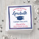 Lägg till en personlig i eleganten till dekorationer på högskolenivå eller studentfest i högskolenivå med dessa pappra blöjor i anpassningsbarna rött, vitt och blått. All text är enkel att anpassa. Utformningen har en vit bakgrund, en blå pantartonshölje, en modern typografi av snyggten och en handskriven stil-manusengrafi. Grattisar till student!