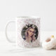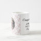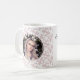 Grattis Rosa Rococo Studenten Photo Mugg. Elegant rosa rococo mönster på vit bakgrund, studentmössa, anpassningsbar och ett foto i ett runt ram. Lägg till fotot, student namn och klassens år.