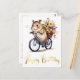 Den här förtjusande bilden visar en hänförande scen där en söt hamster tar på sig rollen som en charmig blombudhamster. Hamstern ses cykla på en liten cykel med tassarna stadigt på handtagen medan den balanserar en färgglad blomsterbukett med glädje.