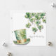 Grön klöver hänger från toppen av detta St Patrick's Day-kort. Framsidan har en guldbandad grön älvhätta med texten Happy St Patrick's Day i elegant skrivstil. Baksidan av kortet visar älvhättan med plats för din irländska välsignelse eller St Patrick's Day-önskningar och din familjs signatur. Anpassa baksidan av kortet med dina önskningar. Njut av din St Patrick's Day!