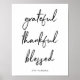 Det här trendiget, minimalistiskt svartvitt poster det inspirerande citatet "tacksam, tacksam, välsignad" i modern handskriven manustypografi.