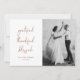 Det här enkla och elegant bröllop-tacket du kort visar ord "tacksam, tacksam, välsignad" i modern, faux ro guld handskriven manustypografi. Det finns ett ställe att lägga till ditt favoritfoto bröllop, och baksidan av kortet är en rik svart färg.