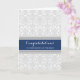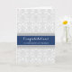 Bröllopskort för gratulation till brudens föräldrar i modern mörkblå, ljusgrå och vit klassisk blomsterinspirerad vintage damaskmönster. Texten är helt anpassningsbar så att du kan skriva ditt eget personliga meddelande, ett unikt sätt att gratulera brudens föräldrar till deras dotters äktenskap.