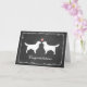 Vita Golden Retriever-brud och -brudgumssilhuetter med hjärta. Ett hälsningskort i kritastil för det lyckliga paret. Detta roliga gratulationskort till det nya herr och fru kan anpassas med din egen speciella hälsning. Ett originellt brölloppsgratulationskort för Golden Retriever-älskare som gifter sig.