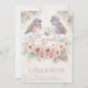 "Denna vackra akvarellillustration firar Lanas och Ryans äktenskap. De två fåglarna med blomsterkransar och notblad symboliserar deras harmoniska union och den glada början på deras nya resa tillsammans."