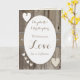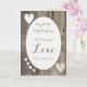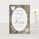 Personliggör denna rustika, mörka *trädbakgrund med vita och beige hjärtan, Bröllopskort till bruden och brudgummen, med deras namn.