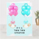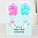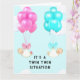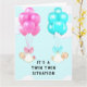 Kreativt gratulationskort för tvillingbaby med tvillingflicka och -pojke samt rolig text.