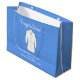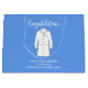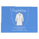 Grattisar till den framtida MD, Doktor, läkare som har förtjänat sin vita jacka. Snyggt och modern design som monogrammerats med namn, händelse och datum för händelsen. Skripta stil grattisar. Blå, vit och svart stil. Skitsade vita jackar.