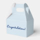Grattisar! i avslappnad mörk blått skript på en ljusblå bakgrund, eller välj färg i bakgrunden.