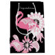 Produktdesignen har en flamingo med kaleidoskopisk paisley-mönster i skuggor av rosa. Denna tropiska fågelillustration med personlig gör en modern och unik medelstor presentsäck.