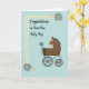 Nyfödd bebis-grattis-kort med illustrerad baby i en reflexräm. Tack vare enkel Sumara och Commercial Använda Scraps för en del av inslag i designen.