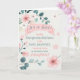 Detta botaniska grattis-kort för nyfödd bebis har persikofärgade blommar med teal grönt grenar att skicka till de nya föräldrarna till flicka.