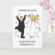 En tecknad av en brud- och trimdans i konetti, tillsammans med ord "Grattisar för att fastställa datum för bröllop". Bilden ställs in mot en vit bakgrund.