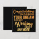 Grattisar om att fortsätta drömmen om att inte längre arbeta här