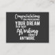 Grattisar för att fullfölja drömmen om att inte ar visitkort