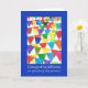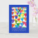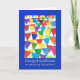 Ett färgfyllt kort för Grattisar för passerande prov, med en skarp flerfärgad buntning av flaggor, från ett handmålat pappert kollage av Judy Adamson. Känn dig fri att anpassa insidermeddelandet.