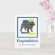 Engelsk bulldog silhouette i gult blue och Black modern grid linjer mönster. Grattisar på din nya valp på utsidan och det roliga meddelandet på insidan kan ändras till vad du vill.