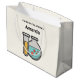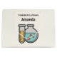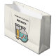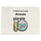 Presentsäck med en söt illustration av ett provrör som håller gult vätska och en rundad kolv/bägare som håller grönt vätska med röda bubblor.