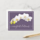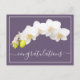 Ett lysande närfoto av ett kluster av vackra vita orkidéblommor mot en lila bakgrund. Blommorna täcker framsidan av det här vykortet som kan användas som ett tackkort, ett födelsedagskort eller något annat kort du väljer. Anpassa den med texten och/eller bilder för att göra den till en sorts!
