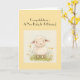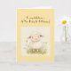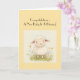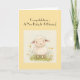 Religiösans hälsningskort "Grattisar - nyfödd bebis är en välsignelse". Cute fårillustration och soft färg, med text inuti (lägg till text, ändra text eller ta bort text för att ha ett tomt kort och skriva ditt meddelande för hand): "Grattisar och bästa önskemål för dig. Må Gud ha sänt dig baby att ha, hålla och kärlek, låta dig ledas av ditt mjuka händer och välsignas av honom ovan". Designad av Best Baby-gåvor - med kärlek.