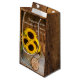 Anpassa och fyll solblommor och Garden Watering Kan Grattis Bröllop Gift Bags med din present till den nya bruden och brudgummen. I dessa charmerande anpassningsbar rustic chic anpassningsbar land ranch stil gratulerara säckar finns ett foto med en blommigt av giftermål som kan fyllas med en bukett av silver solrosblommor, naturligt träskikt med metall gult som brinner på den och en vit blommar med en vävt brun barrträ.