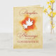 En Heliga Spirit-duva sätter över röd sol och stjärnformad bild. Bakgrunden till färgaden neutralt ställer in det röda meddelandet. Perfekt kort för att gratulera din dotter till hennes bekräftelse.