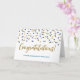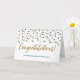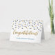 Bröllop-grattis-kort för föräldrar till brudgummen med blå konfekti mönster och guld glitter. Observera att effekten glitter endast är fotografisk.