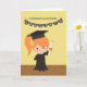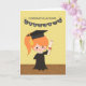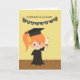 En söt studenten grattis hälsning har en flicka med orange hår med studentmössa och gåva och med ett examensbevis. Det finns en flagga som säger "Grattis Student" på gultens bakgrund med en cirkel där mönster och trä ser ut gräns.