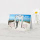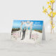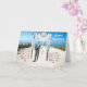 Grattis kort för ett badbröllop. Konstruktionen är en målad strand, som ursprungligen var ett foto, en arkway, en brud och en groom, och blommor. Förutom stranden, alla illustrerade. Tack vare Design Cuts för några av inslagen i designen.