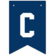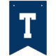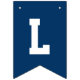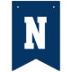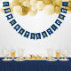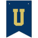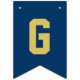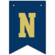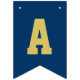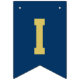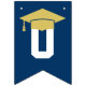 Modern och enkel banderoll för studentfest innehåller "Grattisar"! med gradens accent vid marinblå buntning av flaggor med alternerande vitt och guld brev i sportiskt varierande brev stil. Observera att färg kan anpassas för att matcha färg eller färg i party.